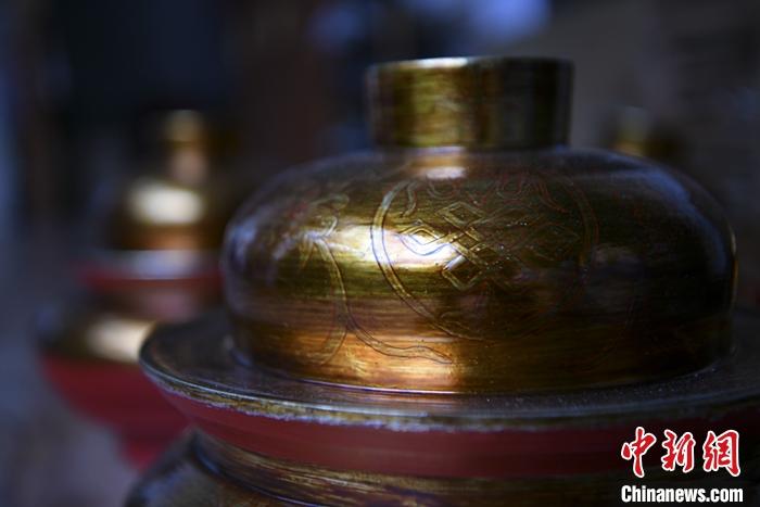 7月22日,魯茸卓瑪制作好的糌粑盒。 中新社記者 劉冉陽 攝