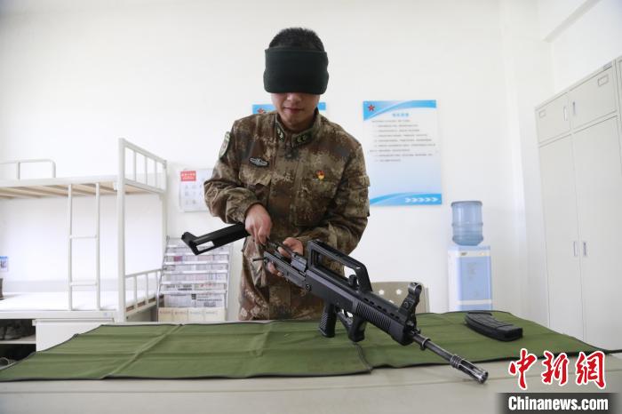資料圖為馮志威演示無光條件下自動(dòng)步槍拆卸。馬銘言 攝