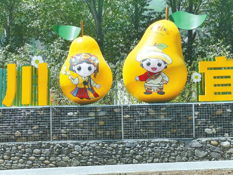 金川縣打造以雪梨為主的原創(chuàng)卡通IP形象“大川”和“小梨”,形成各種造型的雪梨微景觀。 王鑫 攝