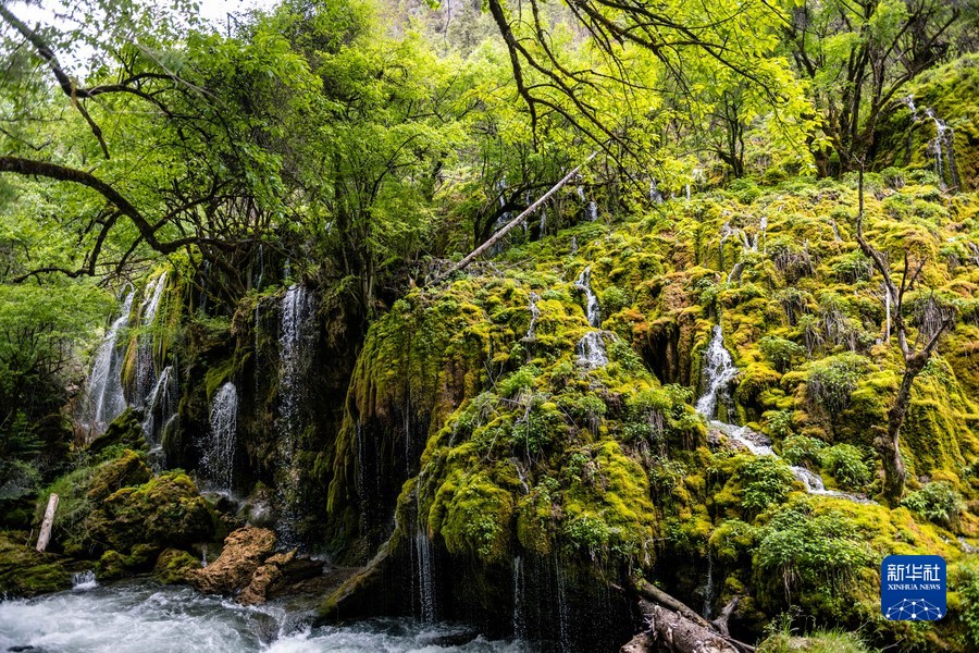 這是位于尼汝村的七彩瀑布景觀。(新華社記者 曹夢(mèng)瑤 攝)