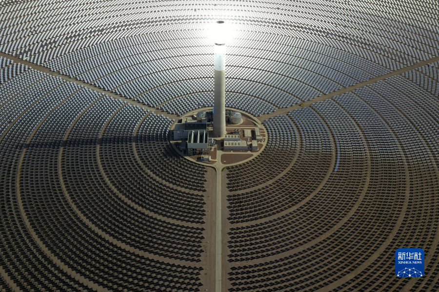這是6月8日在海西蒙古族藏族自治州德令哈市光伏(光熱)產(chǎn)業(yè)園拍攝的青海中控德令哈50兆瓦光熱電站(無人機照片)。新華社記者 范培珅 攝
