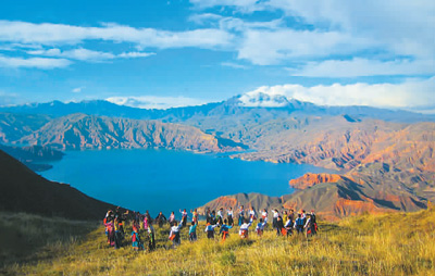 四處可見的蒼翠林木、絢麗的奇花異草,被湛藍湖水包圍著的丹霞群峰……坎布拉景區(qū)的如詩畫卷,令每一個游客流連忘返?!斑@里真的很美,隨手一拍就是大片。”攝影愛好者、浙江游客李先生說,“這是我第二次來這里了,坎布拉天藍、水碧、山青,別有一番風味,我挺喜歡的,等暑假我想帶孩子們再來看看?!?/p>