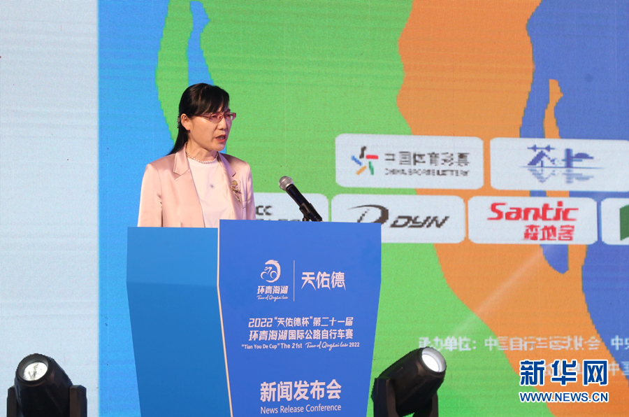 2022第二十一屆環(huán)青海湖國際公路自行車賽新聞發(fā)布會(huì)現(xiàn)場。新華網(wǎng) 卡婭梅朵 攝