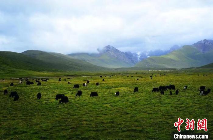 圖為果洛州境內(nèi)草場(chǎng)上牦牛成群。果洛州委宣傳部 供圖