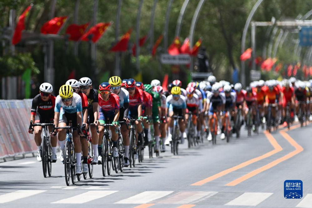 8月3日,參賽選手在收官賽段中騎行。新華社記者 張龍 攝