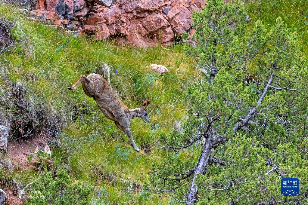這是在昂賽大峽谷內(nèi)拍攝的馬麝(8月6日攝)。新華社 張戈 攝