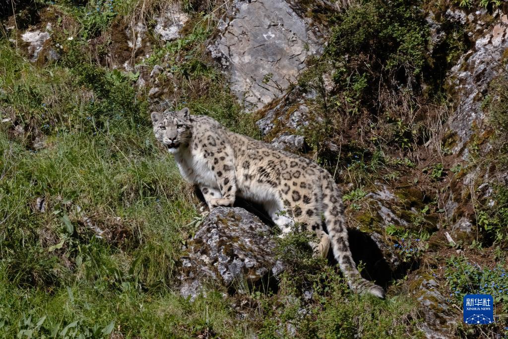 這是在昂賽大峽谷內(nèi)拍攝的雪豹(8月6日攝)。新華社 姚牧陽 攝