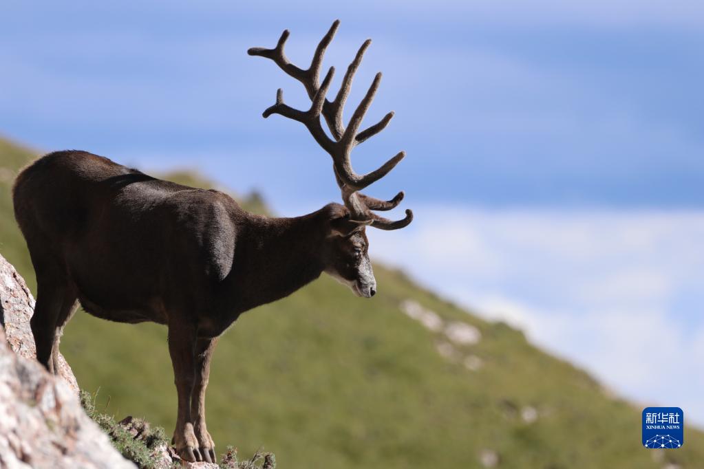 這是在昂賽大峽谷內(nèi)拍攝的白唇鹿(8月5日攝)。新華社 達杰朋措 攝