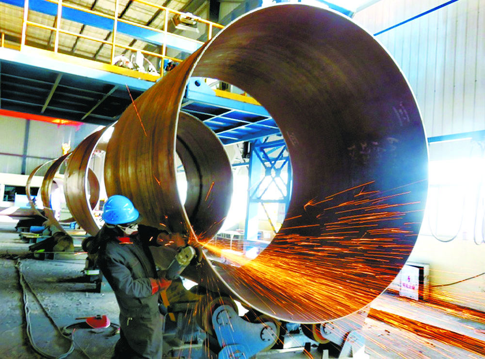 在青海華匯新能源有限公司的生產車間里,工人正在切割制作風力發(fā)電組件。蘇烽 攝