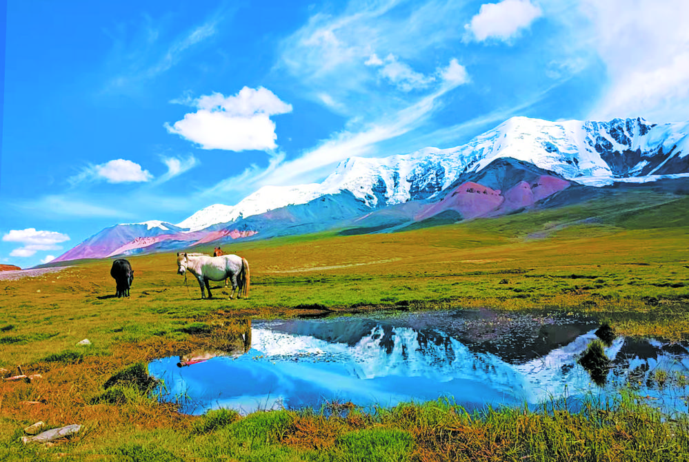 阿尼瑪卿雪山腳下的瑪沁自然風(fēng)光?,斍呖h委宣傳部供圖