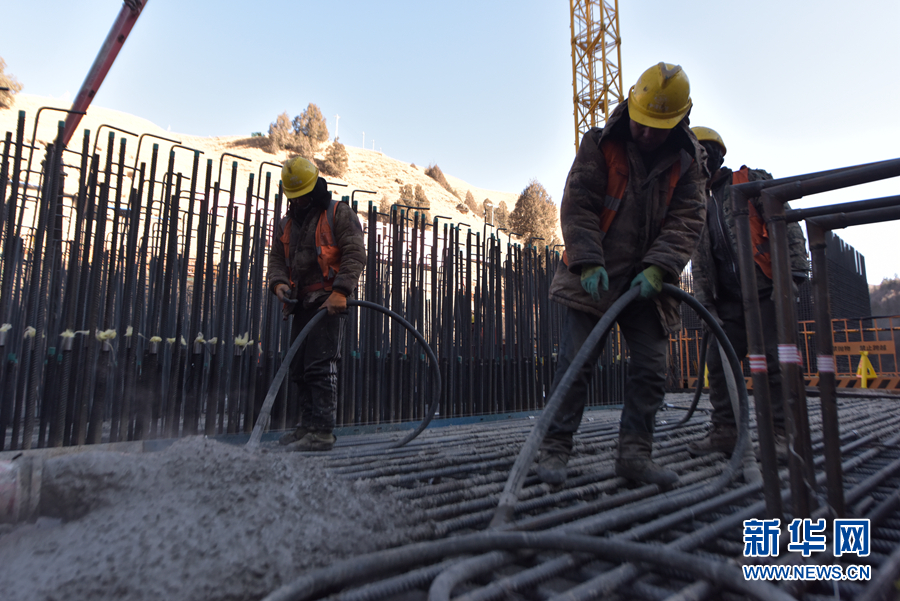 這是施工人員正在進行扎毛河特大橋10號主墩承臺澆筑作業(yè)(新華社記者駱曉飛12月14日攝)