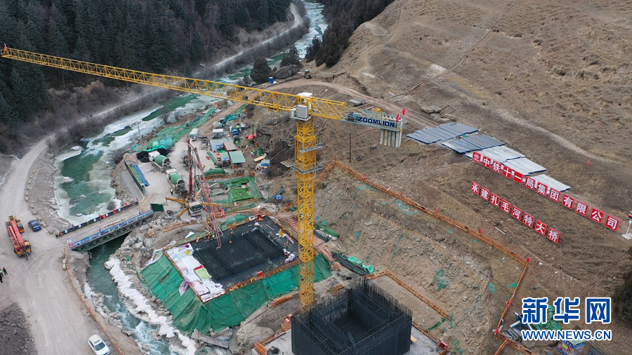 這是同賽公路控制性工程——扎毛河特大橋10號主墩承臺施工現(xiàn)場(新華社記者駱曉飛12月14日攝)