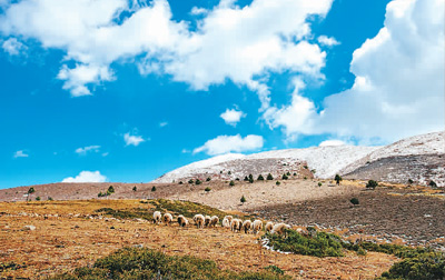 牧民的牛羊在塔公草原悠閑食草。李隆德 攝(人民圖片)