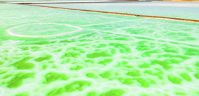 8月15日,航拍地處青海省海西州茫崖市的翡翠湖。翡翠湖是一個人工鹽湖,田字狀的湖水呈現(xiàn)出青翠的色彩。[詳細] -