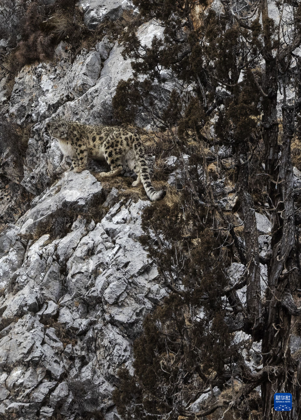 這是2月21日在昂賽大峽谷拍攝的雪豹。新華社記者 費茂華 攝