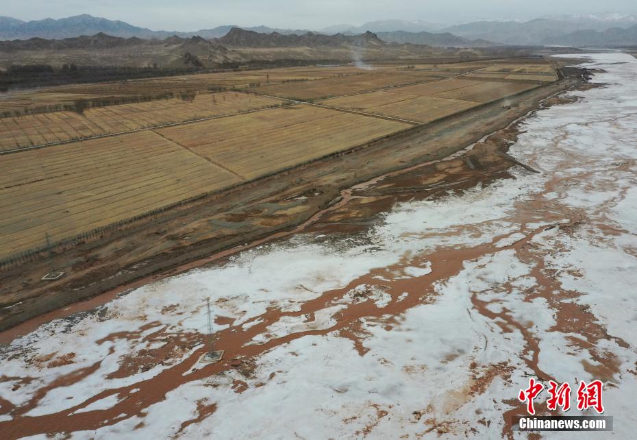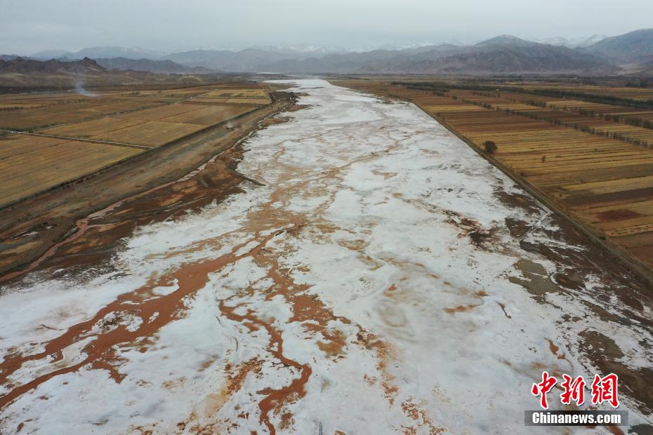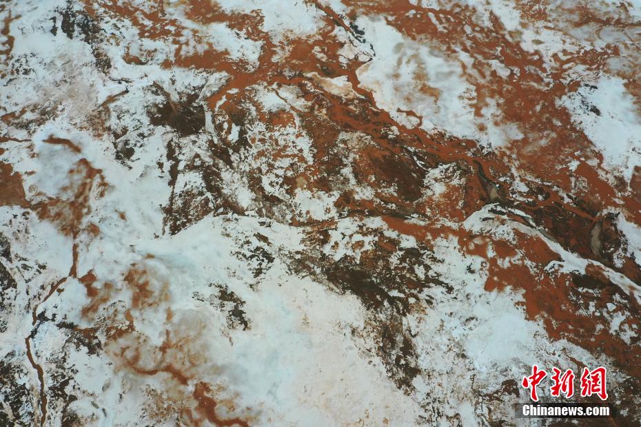 3月19月,航拍青海省海西蒙古族藏族自治州都蘭縣香日德河。香日德河是柴達(dá)木盆地的第三條大河,因河底的石頭由紅色片麻巖組成,加之上游地區(qū)下雨沖刷紅色土壤而形成棕紅色河流的自然景觀,故稱(chēng)“紅河谷”。河流夾帶礦物質(zhì),長(zhǎng)年累月積累形成了干涸淺紅色的河床。初春三月,乍暖還寒,紅色的河流與白色的冰面相互交錯(cuò),絢麗壯美。