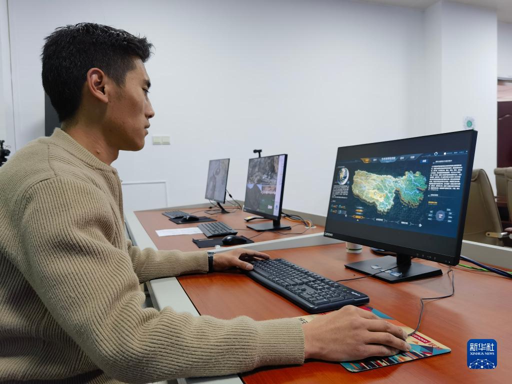 3月23日,工作人員正在操作“江源之窗”視頻觀(guān)測(cè)系統(tǒng)。新華社記者 柳澤興 攝