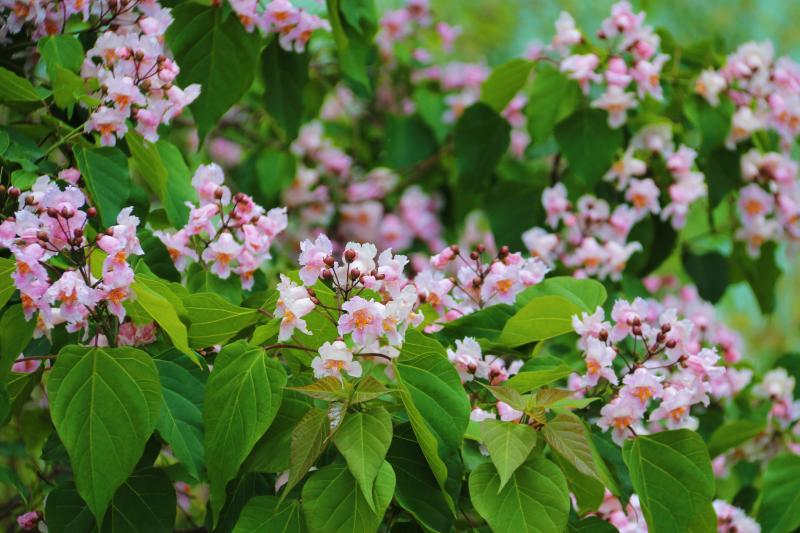 楸英獨嫵媚,淡紫相參差。春季是春花爛漫的時節(jié),一花落盡又有一花開,在迪慶香格里拉經濟開發(fā)區(qū),楸樹正迎來繁花期,一樹樹楸花簇擁綻放,隨風搖曳,美不勝收。