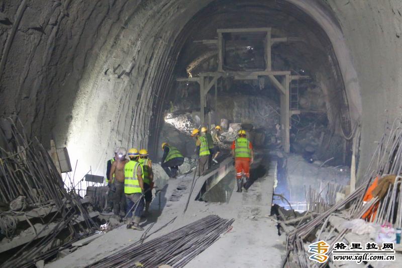 施工隧道內(nèi),工人們在機器轟鳴聲中有序施工,隧道內(nèi)最高溫度達42℃,艱苦的施工環(huán)境和復雜多變的地質(zhì)環(huán)境給施工進度制造了重重壓力。
