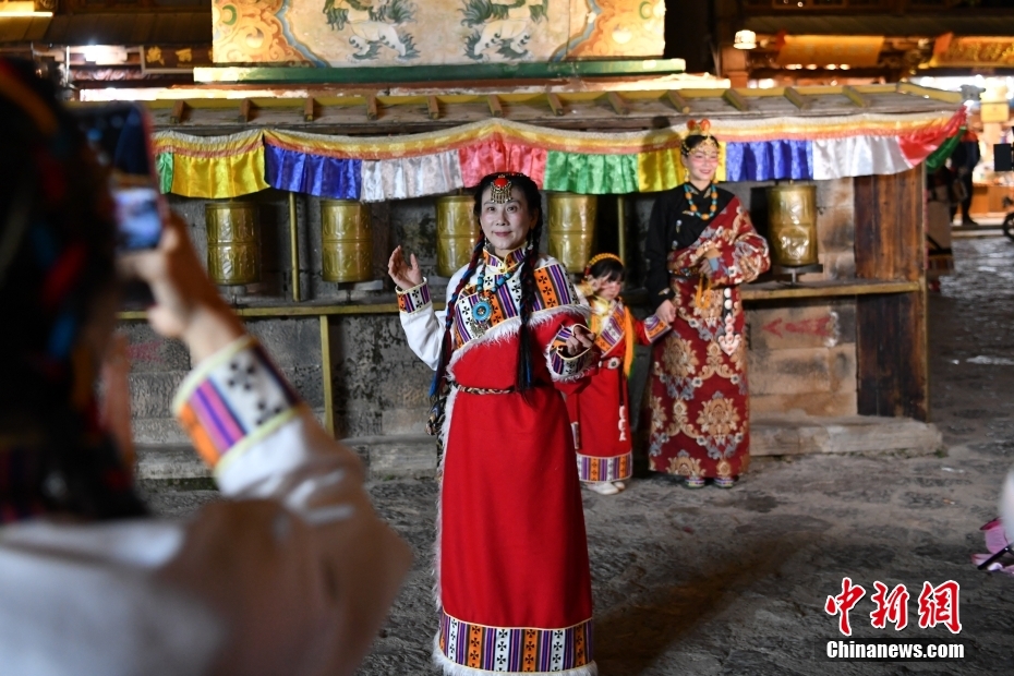 “當(dāng)下的年輕人特別喜歡旅拍,我們提供藏族服裝租借、化妝、拍攝外景服務(wù),每天一大早就有旅客上門?!辈乜门牡曦?fù)責(zé)人達能拉姆說。