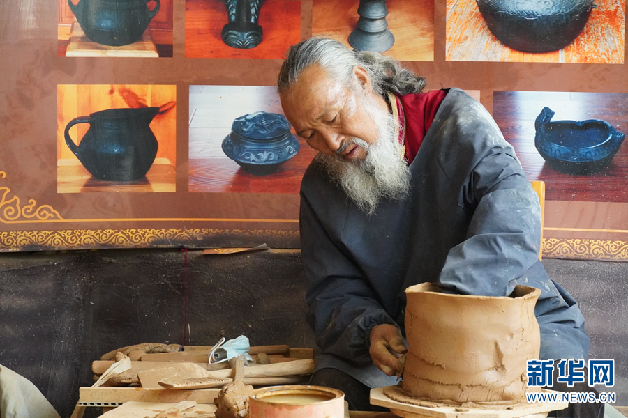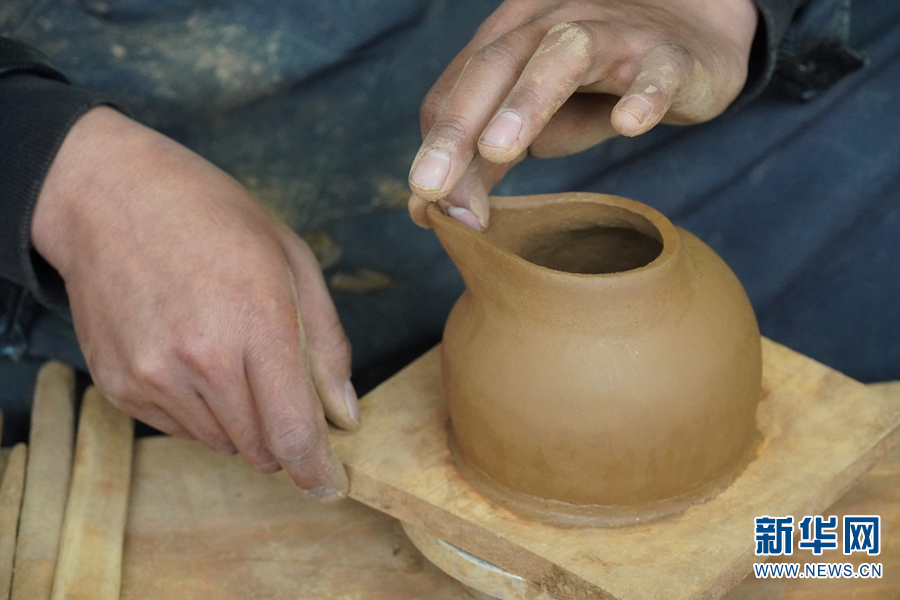 傳承人正在制作尼西黑陶(4月27日攝)。新華網(wǎng) 柴靜 攝