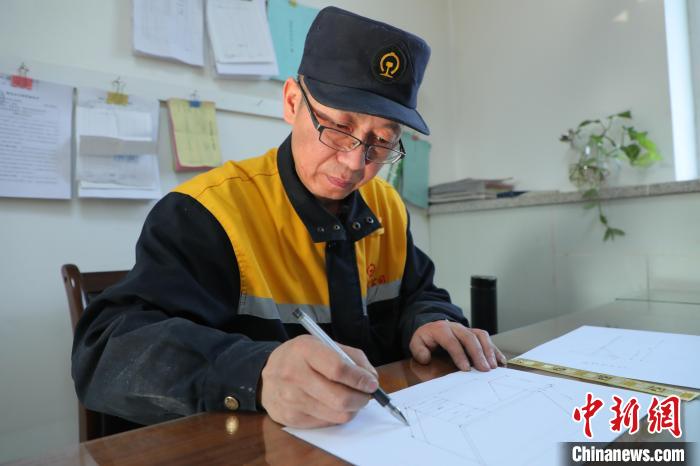 圖為梁軍正在繪制設(shè)計圖紙。周悅翔 攝