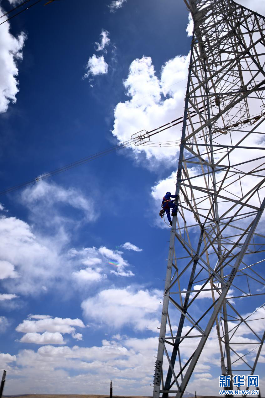 5月底,被譽為“電力天路”的青藏聯(lián)網(wǎng)工程迎來第12次年度集中檢修,超過420人將在15天內(nèi)完成608公里的輸電線路及柴達木換流站的檢修工作。在青海省海西蒙古族藏族自治州格爾木市唐古拉山鎮(zhèn)境內(nèi),檢修人員在巡檢中(6月3日攝)新華網(wǎng) 潘彬彬 攝
