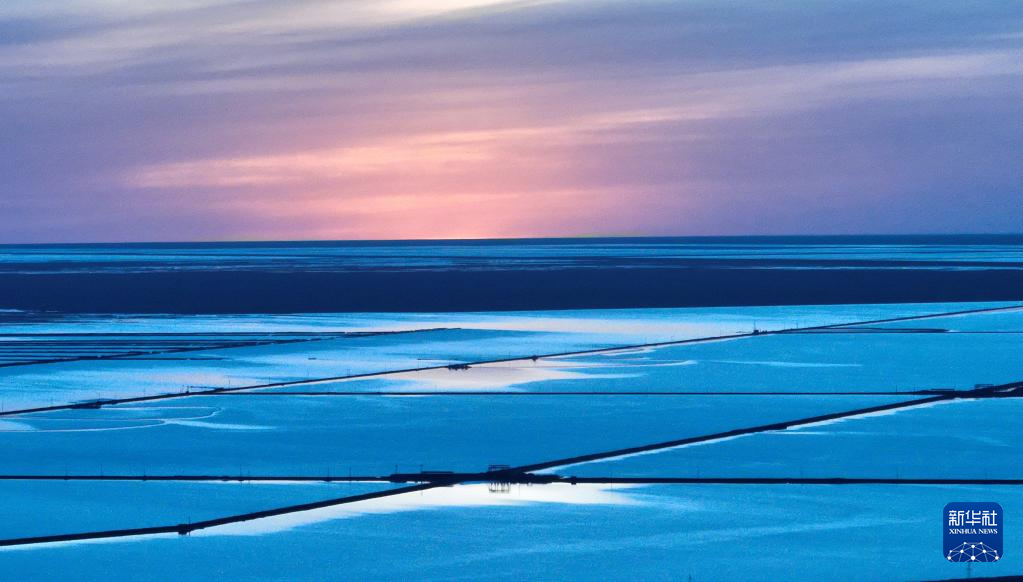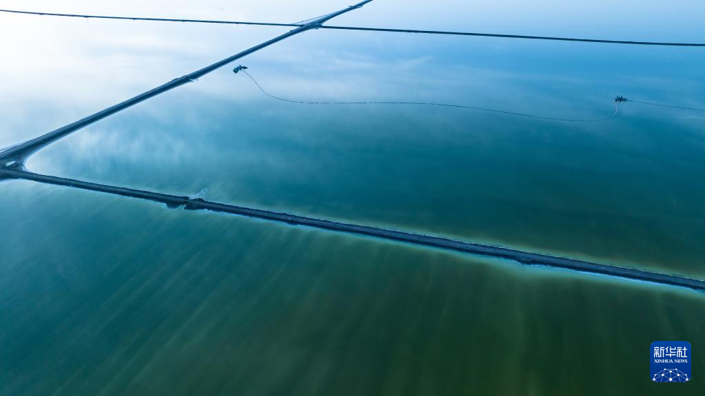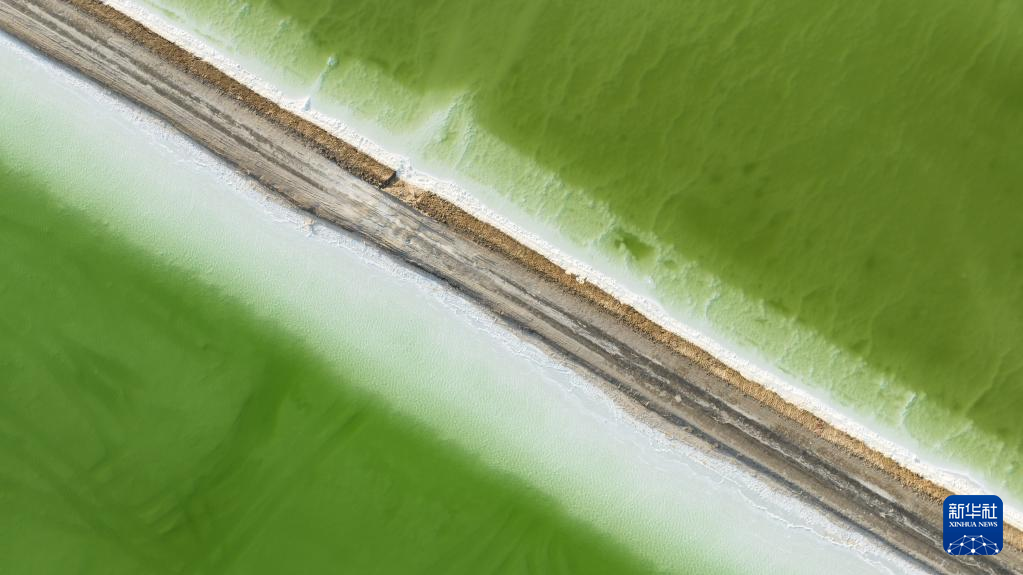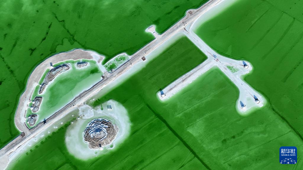 這是6月8日拍攝的察爾汗鹽湖景色(無(wú)人機(jī)照片)。新華社發(fā) 潘彬彬 攝