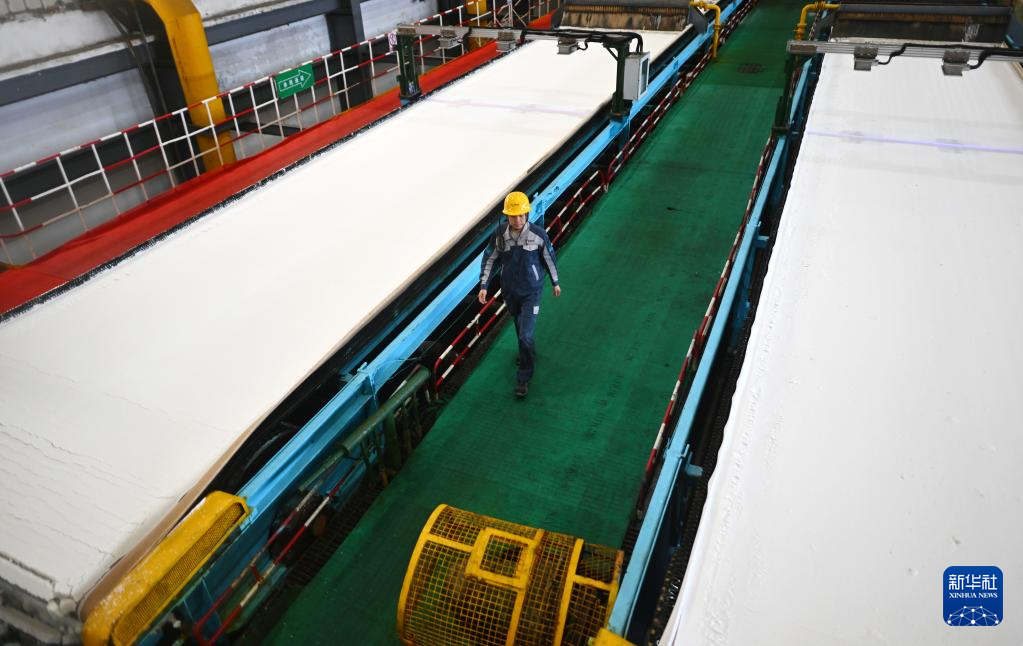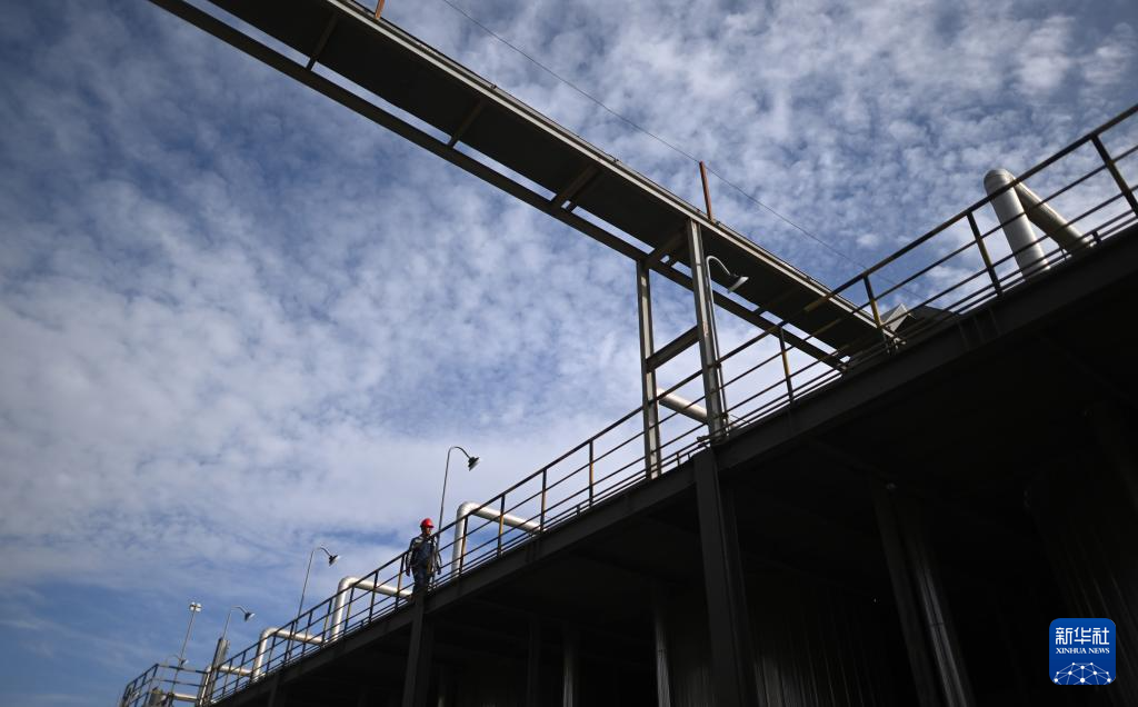 一名工作人員在青海鹽湖藍(lán)科鋰業(yè)股份有限公司生產(chǎn)區(qū)內(nèi)巡檢(6月9日攝)。新華社記者 張宏祥 攝