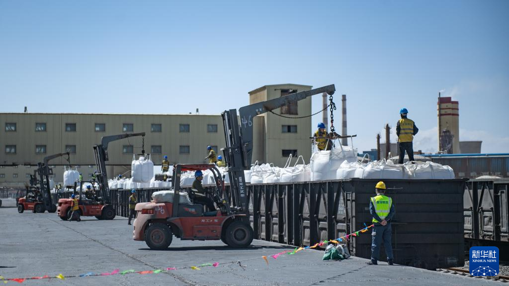 6月12日,在青海鹽湖工業(yè)股份有限公司鉀肥分公司貨場,工作人員在裝運(yùn)鉀肥。新華社記者 潘彬彬 攝
