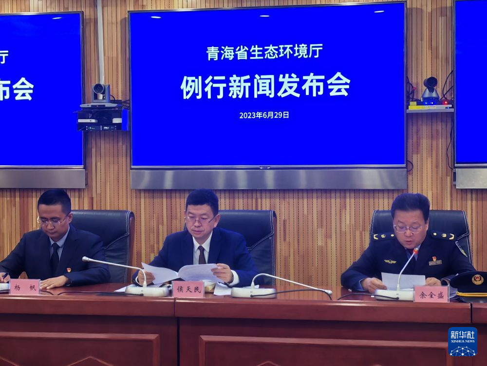 這是6月29日舉行的青海省生態(tài)環(huán)境廳例行新聞發(fā)布會現(xiàn)場。新華社記者 周盛盛 攝