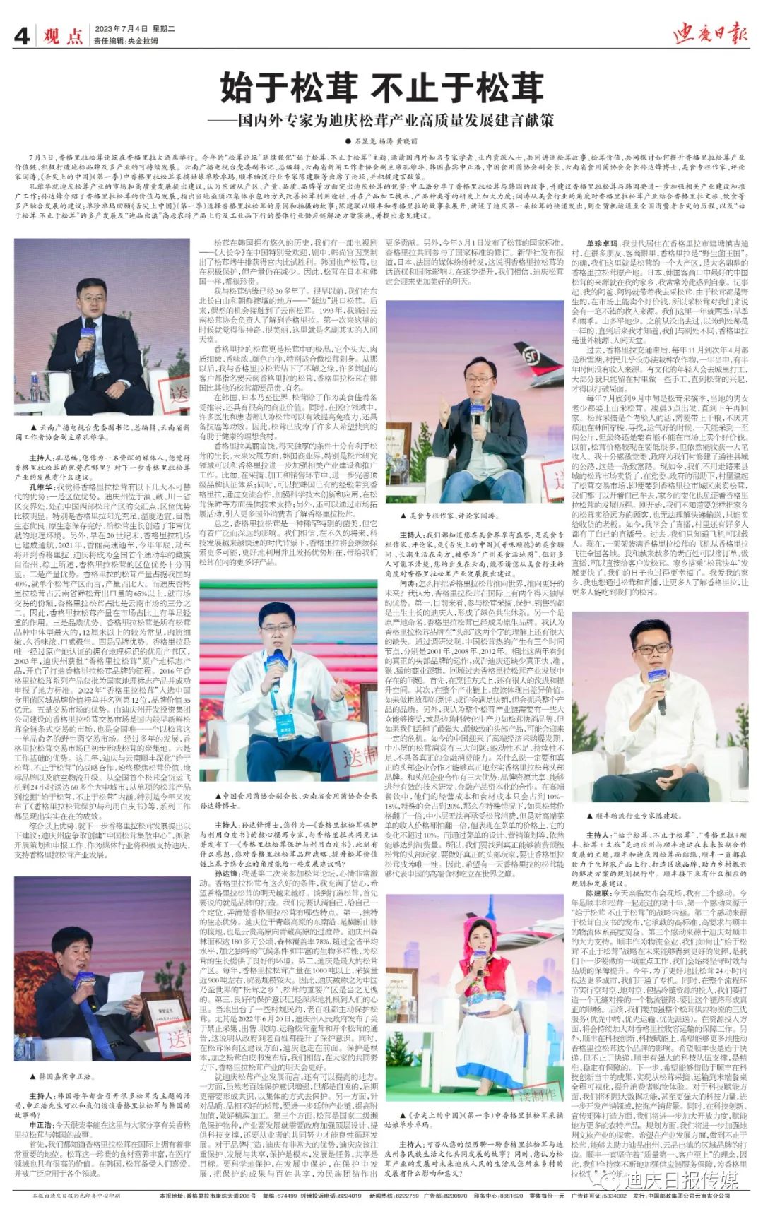 【關注】明日出版的《迪慶日報》第四版將整版刊登國內(nèi)外專家對迪慶松茸產(chǎn)業(yè)高質(zhì)量發(fā)展給出的建議