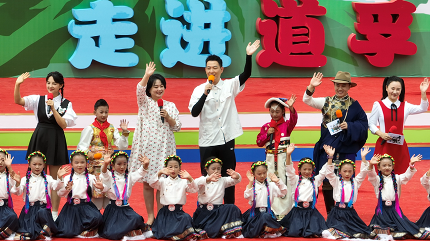 在中國共產(chǎn)黨成立102周年和甘孜州“鑄牢中華民族共同體意識 民族團(tuán)結(jié)進(jìn)家庭”實(shí)踐行動(dòng)開展一周年之際,4日上午,中央廣播電視總臺少兒頻道《大手牽小手——走進(jìn)甘孜》文藝演出在道孚縣濕地公園廣場進(jìn)行錄制。鞠萍姐姐、金豆哥哥、徐柳姐姐、霍小雷哥哥、陳怡姐姐等央視少兒頻道知名主持人一同現(xiàn)身,與當(dāng)?shù)?00余名少年兒童同臺表演,歡歌踏舞頌黨恩,秉承初心展風(fēng)采。