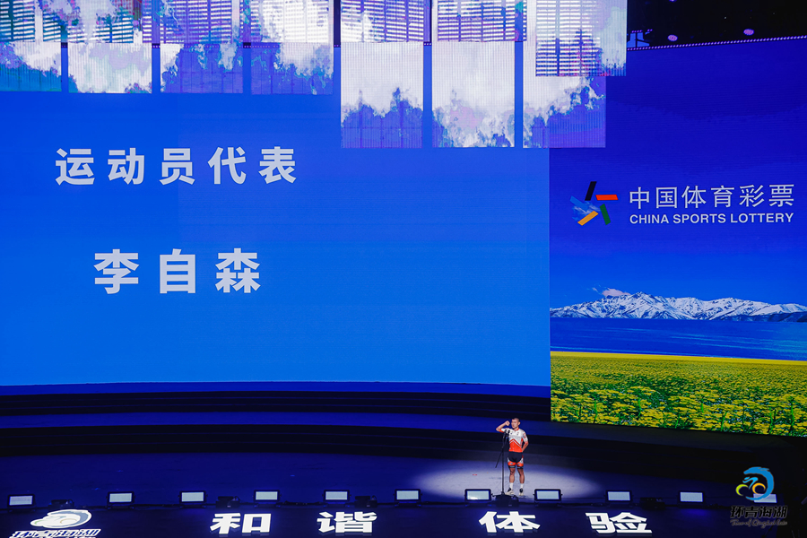 運動員代表李自森宣誓。環(huán)湖賽組委會供圖