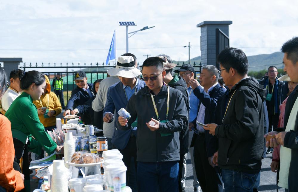 參會(huì)代表在四川省阿壩藏族羌族自治州紅原縣省級(jí)五星牦牛產(chǎn)業(yè)園區(qū)了解牦牛乳產(chǎn)品。耿小耀 攝
