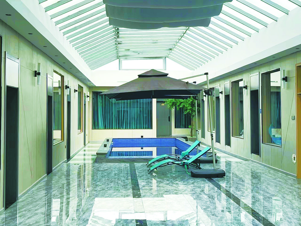 “觀賞完茶卡優(yōu)美的鹽湖景色之后,我在網(wǎng)上找到了這家民宿?!眮碜哉憬挠慰蜅畋蛘f,“這里有茶室、泳池、星空房,一家人住得很舒服,尤其是孩子特別喜歡?!?/p>