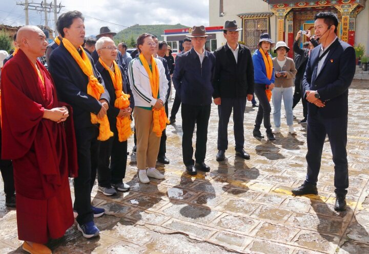 在松贊林寺和東竹林寺,洛桑江村一行調(diào)研了迪慶州藏傳佛教中國(guó)化以及鑄牢中華民族共同體意識(shí)工作的開展情況。洛桑江村對(duì)相關(guān)工作取得的成績(jī)給予肯定并強(qiáng)調(diào),迪慶要緊緊抓住鑄牢中華民族共同體意識(shí)這條主線,深化民族團(tuán)結(jié)進(jìn)步教育,引導(dǎo)全州各族群眾牢固樹立休戚與共、榮辱與共、生死與共、命運(yùn)與共的共同體理念,不斷鞏固中華民族共同體思想基礎(chǔ),要促進(jìn)各民族的交往交流交融,推動(dòng)民族地區(qū)加快現(xiàn)代化建設(shè)的步伐。洛桑江村還勉勵(lì)全州廣大宗教界人士要繼續(xù)弘揚(yáng)愛國(guó)愛教優(yōu)良傳統(tǒng),認(rèn)真對(duì)照“政治上靠得住、宗教上有造詣、品德上能服眾、關(guān)鍵時(shí)起作用”的標(biāo)準(zhǔn),爭(zhēng)做愛黨愛國(guó)的模范。要堅(jiān)持宗教中國(guó)化方向,積極引導(dǎo)宗教與社會(huì)主義社會(huì)相適應(yīng),為維護(hù)祖國(guó)統(tǒng)一、民族團(tuán)結(jié)、社會(huì)和諧、宗教和順作出更大貢獻(xiàn)。