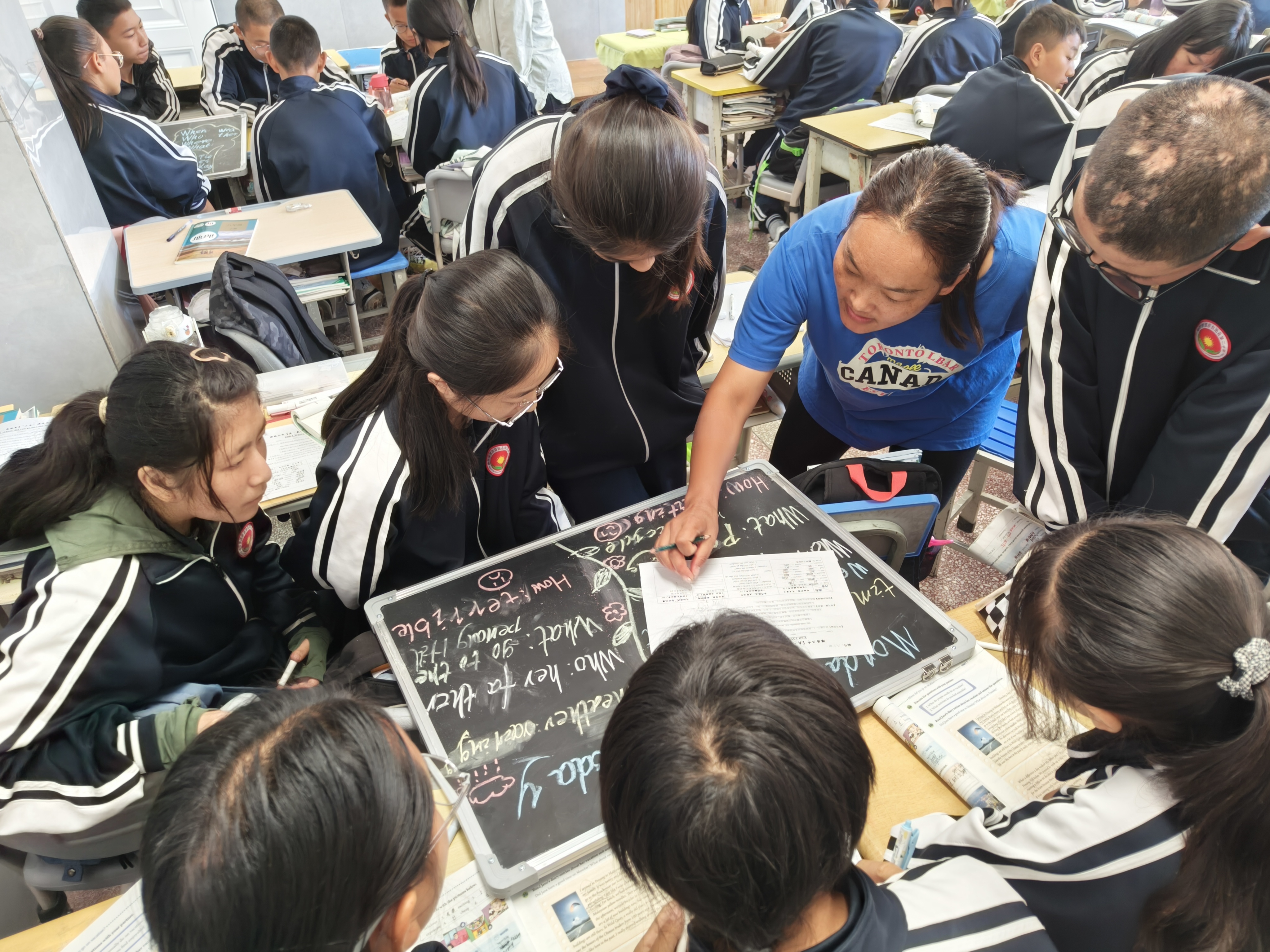 記者見到陳兆鴻時,她正在與三個年級的英語老師研討如何進一步提升英語教學工作、落實落細“新課標”的相關(guān)要求,確保老師教學和作業(yè)布置更加科學合理,滿足學生需要。