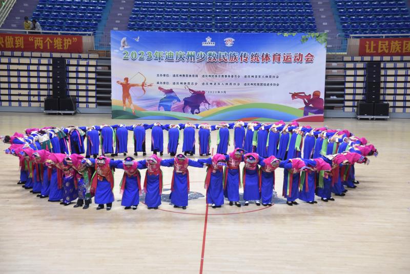 圖為九月十七日晚,迪慶州二〇二三年少數(shù)民族傳統(tǒng)體育運動會在少數(shù)民族歌舞和健身操展演中拉開序幕,來自全州各地的少數(shù)民族傳統(tǒng)體育運動愛好者歡聚一堂,共同歡慶這一盛會。