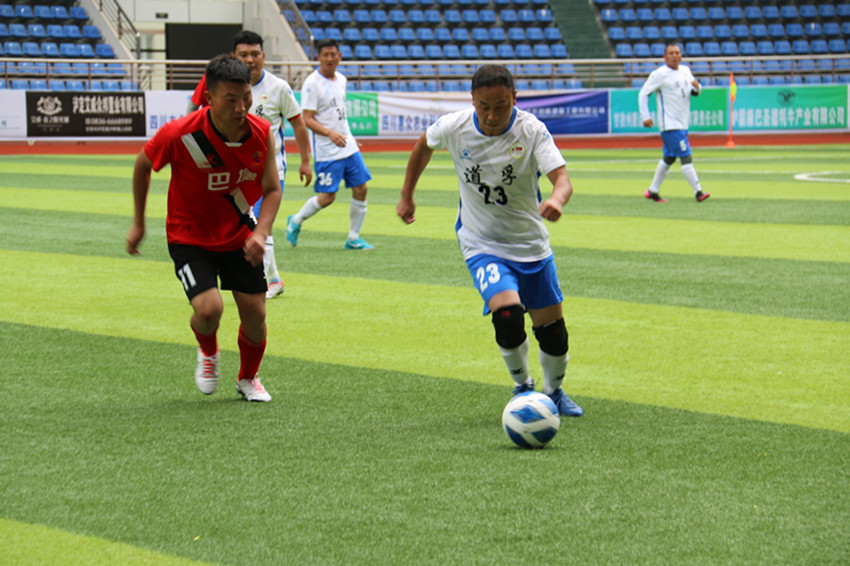 上午9時(shí),道孚隊(duì)與巴塘隊(duì)的季軍爭奪戰(zhàn)正式開打,現(xiàn)場助威的觀眾熱情高漲,為各自支持的球隊(duì)吶喊助威。比賽一開始雙方球員迅速進(jìn)入狀態(tài),在中場你來我往,足球在各位球員的腳下輾轉(zhuǎn)騰挪,經(jīng)過激烈比賽,上半場巴塘隊(duì)1:0暫時(shí)領(lǐng)先道孚隊(duì)。