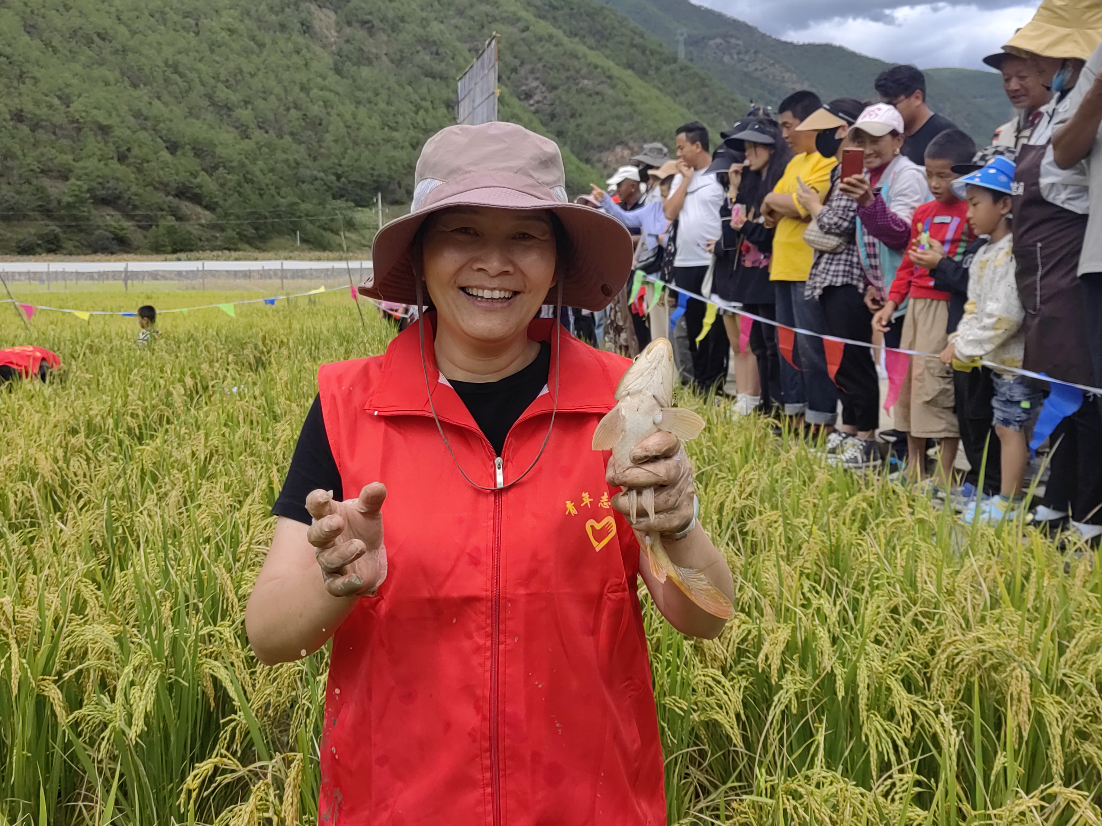 當天下午的活動中,摸魚、抓鴨、射箭、餌塊制作、崖柏香制作等民俗體驗活動一一上演,淋漓盡致地展現(xiàn)出了農(nóng)民的美好生活。塔城素有“高原魚米之鄉(xiāng)”美譽,稻田魚、稻田鴨等生態(tài)農(nóng)產(chǎn)品供不應(yīng)求,一派“禾下乘涼、稻香綿長”的豐收景象。