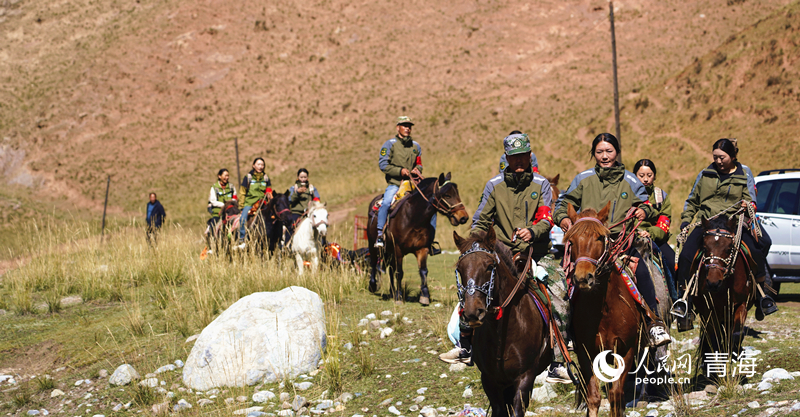 管護(hù)員們騎馬巡山。人民網(wǎng)記者 楊啟紅 攝
