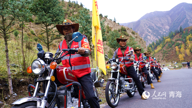 管護(hù)員們騎摩托車準(zhǔn)備巡護(hù)。人民網(wǎng)記者 楊啟紅 攝