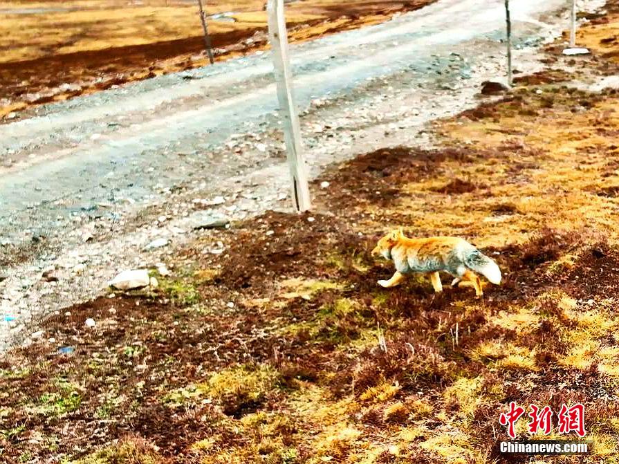 圖為藏狐準(zhǔn)備穿過草原牧道。張世偉 攝