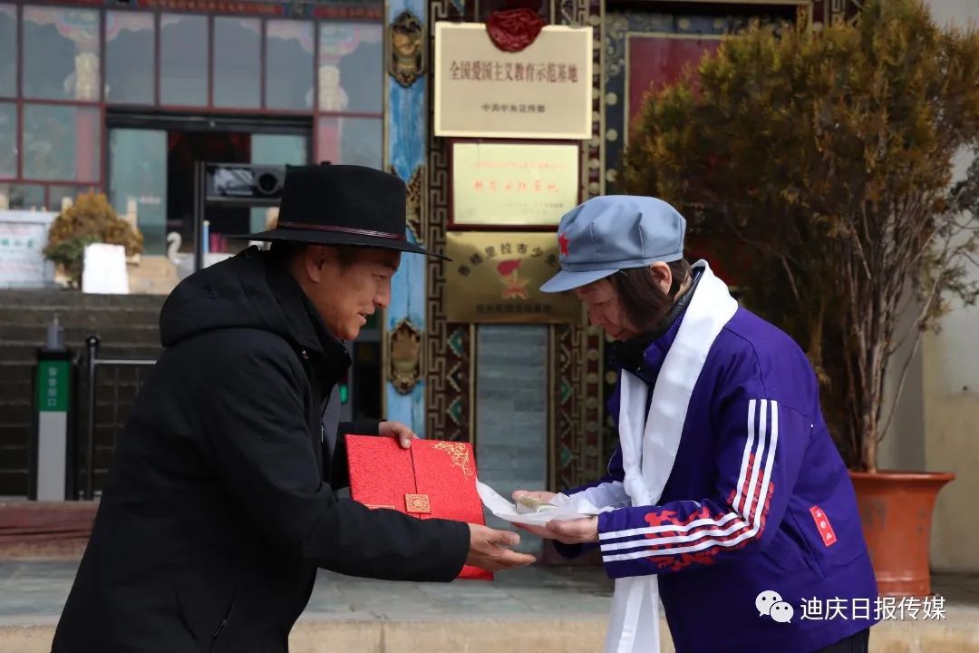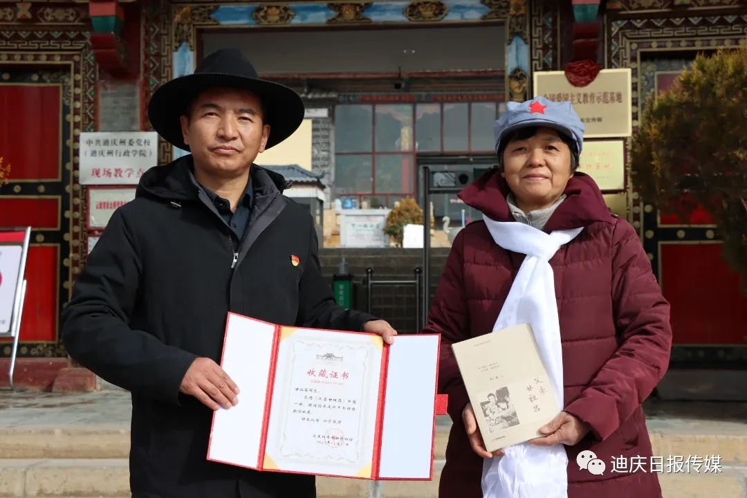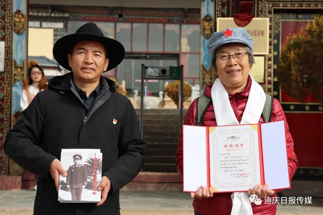 迪慶紅軍長(zhǎng)征博物館館長(zhǎng)潘高原代表博物館接收了這些珍貴的革命資料、實(shí)物,向他們授予了榮譽(yù)證書(shū)并在博物館前合影留念。