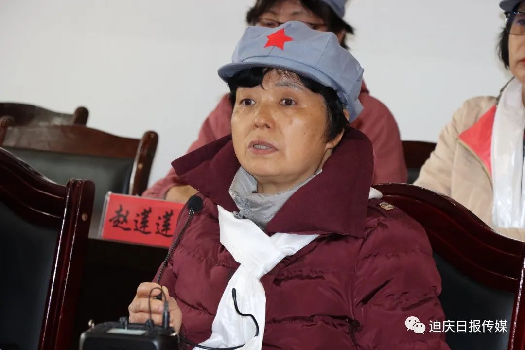 甘祖昌之女甘仁榮回憶起父親,眼中噙滿(mǎn)淚水。其父親甘祖昌,中國(guó)人民解放軍少將軍銜,被稱(chēng)為“將軍農(nóng)民”。1926年參加村農(nóng)民協(xié)會(huì),1927年加入中國(guó)共產(chǎn)黨,翌年參加中國(guó)工農(nóng)紅軍。在革命生涯中,歷任湘贛軍區(qū)紅軍兵工廠(chǎng)副科長(zhǎng)、八路軍第三五九旅供給部軍需科科長(zhǎng)、三五九旅供給部副部長(zhǎng)、晉綏軍區(qū)三五九旅供給部部長(zhǎng)、西北野戰(zhàn)軍第二縱隊(duì)后勤部部長(zhǎng)、第一野戰(zhàn)軍二軍后勤部部長(zhǎng)等職。先后參加了國(guó)內(nèi)革命戰(zhàn)爭(zhēng)、抗日戰(zhàn)爭(zhēng)、解放戰(zhàn)爭(zhēng),為了黨和人民的事業(yè)出生入死、數(shù)次負(fù)傷 。中華人民共和國(guó)成立后,甘祖昌歷任新疆軍區(qū)后勤部副部長(zhǎng)兼供給處處長(zhǎng),兼財(cái)務(wù)處處長(zhǎng),新疆軍區(qū)后勤部部長(zhǎng)。1955年被授予少將軍銜,榮獲八一勛章、獨(dú)立自由勛章、解放勛章等 。1957年,甘祖昌在辭去新疆軍區(qū)后勤部部長(zhǎng)的職務(wù)后,帶著家人回到闊別20多年的家鄉(xiāng),從此開(kāi)始了29年的“農(nóng)民生涯”。從江西到延安再到新疆,甘祖昌將人生中三分之二的時(shí)光都奉獻(xiàn)給了國(guó)家獨(dú)立和民族解放的革命斗爭(zhēng)中。其母親龔全珍是開(kāi)國(guó)少將甘祖昌夫人、江西省萍鄉(xiāng)市南陂小學(xué)原校長(zhǎng)。1957年8月,龔全珍隨丈夫甘祖昌回家鄉(xiāng)江西省蓮花縣務(wù)農(nóng)并一直從事鄉(xiāng)村教師工作。離休后,又扶貧助學(xué),開(kāi)辦“龔全珍工作室”服務(wù)社區(qū)、群眾。著有紀(jì)實(shí)作品《我和老伴甘祖昌》。習(xí)近平總書(shū)記先后兩次親切接見(jiàn)龔全珍,親切地稱(chēng)她為“老阿姨”。龔全珍曾榮獲第四屆全國(guó)道德模范稱(chēng)號(hào)、“感動(dòng)中國(guó)”2013年度十大人物 、全國(guó)優(yōu)秀共產(chǎn)黨員 、“感動(dòng)江西十大教育年度人物”“全國(guó)模范退役軍人”等稱(chēng)號(hào)。甘仁榮在座談會(huì)上談及父母從小對(duì)子女嚴(yán)苛的家教,從飯桌上絕不能浪費(fèi)一粒糧的教育再到了父母離開(kāi)城市回農(nóng)村搞建設(shè)的過(guò)往,從幼兒的少不更事,到如今自己親身來(lái)到迪慶,感受父輩走過(guò)的路,真切地體會(huì)到了父輩身上不畏艱險(xiǎn)、堅(jiān)韌不拔、頑強(qiáng)拼搏、攻堅(jiān)克難的奮斗精神和為黨和人民的事業(yè)“鞠躬盡瘁、死而后已”的偉大獻(xiàn)身精神?,F(xiàn)場(chǎng)氣氛莊嚴(yán)肅穆,令人感動(dòng)。