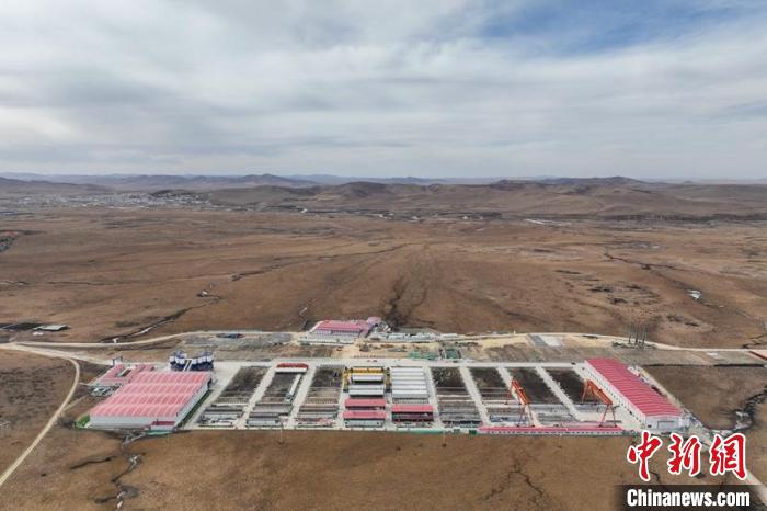 航拍若爾蓋草原上的高原制梁場(chǎng)。記者 劉忠俊 攝