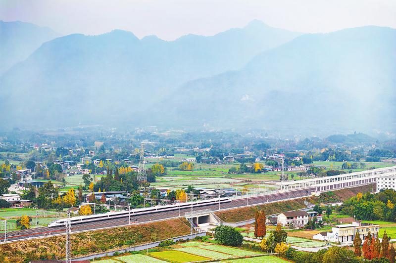 11月23日,試跑動車組行駛在綿陽市安州區(qū)境內(nèi)。 四川日報全媒體記者 何海洋 攝