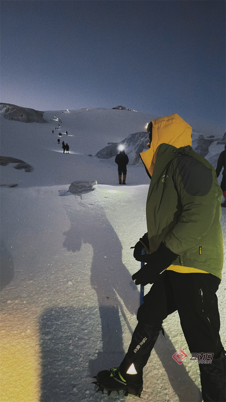 “在漫天星空的寂靜黎明,踏上雪山登頂?shù)穆贰D_下是結實的冰面,寒風呼嘯而過,充滿力量的每一步是向自然致敬,站在山頂迎接朝陽。”來自西安19歲的登山者任景彬在迪慶藏族自治州香格里拉市哈巴雪山大本營與團友一邊交流一邊發(fā)朋友圈,分享著在云南不一般的戶外體驗。