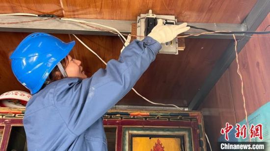 圖為扎西拉毛在結(jié)拉村義務(wù)檢查線路和更換開(kāi)關(guān)。普布永措 攝